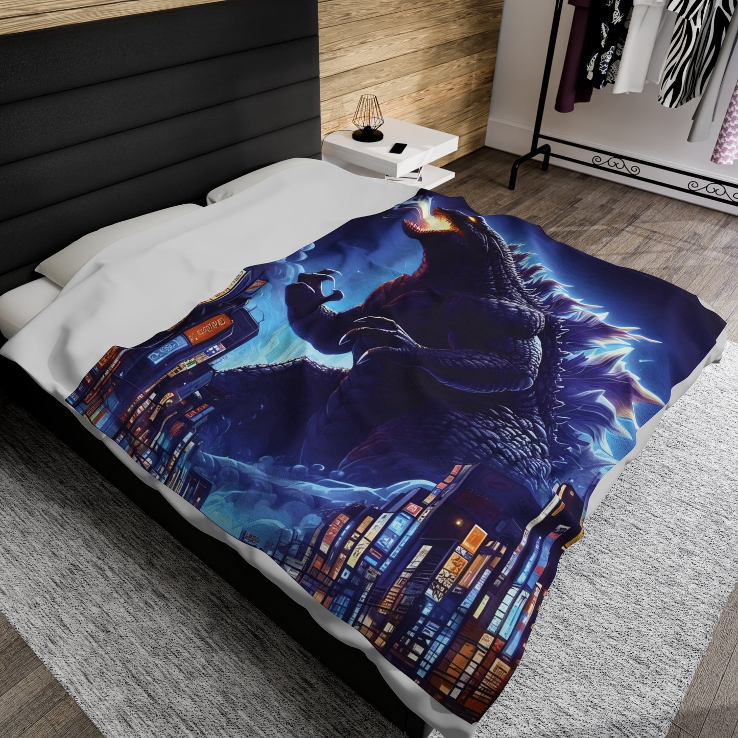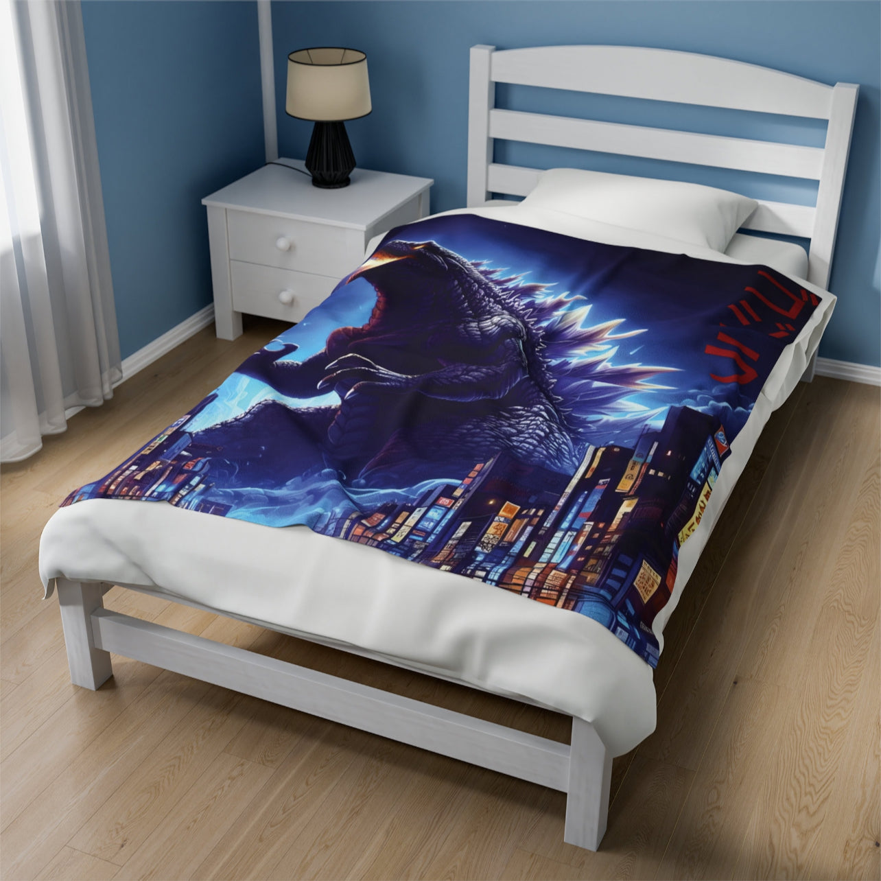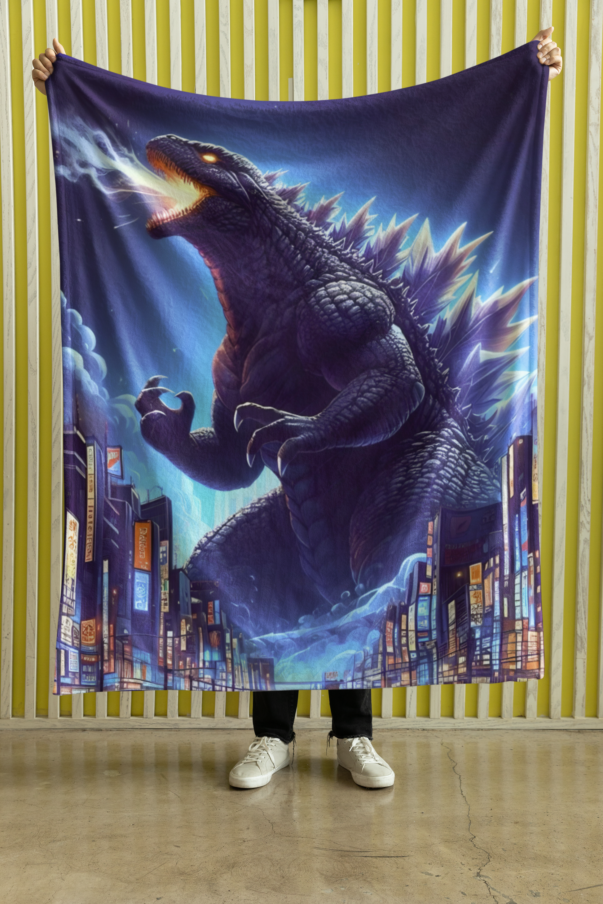 Godzilla In The City Throw Blanket, Anime Godzilla Blanket, Kids Blanket, Japanese Blanket, Dinosaur Blanket, Monster Blanket, T Rex Blanket
